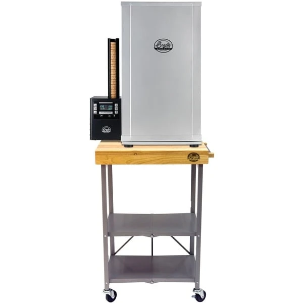 Der Bradley Smoker Klapptisch mit Rollen (Kitchen Cart) ist perfekt für Partys, Familienfeiern, Camping oder Abschlussfeiern. Dieser vielseitige Wagen kann als Beistelltisch für Smoker, Grill oder Fritteuse verwendet werden. Der 61 x 51 cm große, hölzerne Metzgerblock dient gleichzeitig als Schneidebrett und zwei Ablagen bieten Stauraum für Lebensmittel oder Utensilien. Der Rolltisch verfügt über vier Rollen (zwei davon arretierbar), so dass man ihn für Partys, Cookouts oder überall verwenden kann, wo zusätzlicher Servier- oder Vorbereitungsraum benötigt wird. Mit einem stabilen Stahlrahmen lässt er sich in Sekundenschnelle öffnen und zur Aufbewahrung leicht zusammenklappen.Art.-Nr.: 1600908