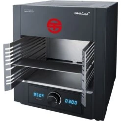 | Bedienung | Funktionen | Touchscreen, USB-Anschluss zum Einlesen von Rezepten, Ofentemperatur (wird automatisch gehalten), Garzeit (nach Ablauf der Zeit schaltet sich das Heizelement ab), Räucherzeit (unabhängig von der Garzeit) | |