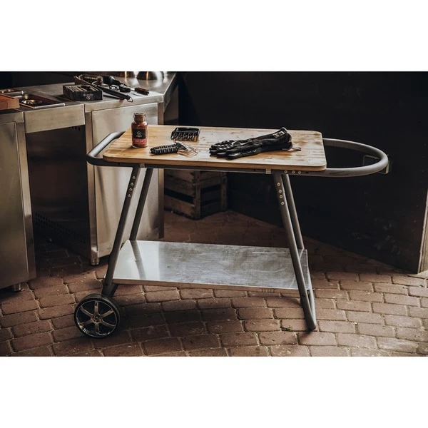 Der Moesta Sheriff Pelletgrill Beistelltisch passt perfekt zum Sheriff Grill. Das Rahmenrohrgestell inklusive Rollen ist mit einem XL Bambusbrett ausgestattet. Diese Arbeitsplatte hat die Abmessungen 60 x 90 cm. Der Beistelltisch eignet sich hervorragend für das Zubereiten von Speisen.Art.-Nr.: 1700999