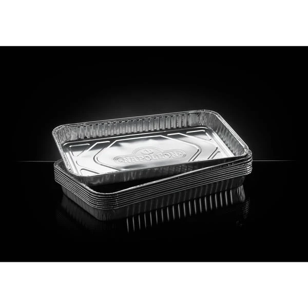 Mit den Fettauffangschalen 62008 von Napoleon kann man den Grill sauberhalten und es bleibt mehr Zeit für den Grillgenuss. Manchmal ist ein Abtropfen von Fleischsäften und Fetten nicht zu verhindern. Hier kommen die Alutropfschalen ins Spiel. Sie sammeln austretende Fette und Säfte. Mit der Verwendung von Alutropfschalen schützt man den Grill und spart wertvolle Zeit bei der Reinigung. Oder man füllt bei langen Grillzeiten einfach Getränke oder Flüssigkeiten in die Grillschale. Der so entstandene Dampf sorgt für besonders saftige und leckere Speisen. Die Alutropfschale unter dem Grillgut (Drehspieß) oder unter dem Grillrost fängt die austretenden Säfte auf. Das bietet gleich zwei Vorteile: Einerseits werden die Flammenschutzeinsätze und das Grillsystem nicht verschmutzt. Andererseits sammelt man so leckere Fleischsäfte und kann passende Saucen zum Grillgericht zubereiten.Art.-Nr.: 1404562