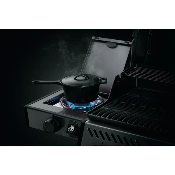 Der Napoleon Freestyle 365 SB Graphit ist ein kompakter Gasgrill mit Seitenkocher, erstklassigen Funktionen und unschlagbarem Preis-Leistungsverhältnis. Der Flammenstrahl des JETFIRE Zündsystems zündet die Hauptbrenner schnell, einfach und zuverlässig. Die Iconic Wave-Grillroste aus Gusseisen und die emaillierten Flammenschutzbleche ermöglichen eine gleichmäßige Hitze-Verteilung und ein perfektes Anbraten. Die Porzellanbeschichtung schützt sie dabei vor Rost. Der langlebige Feuerkasten aus Aluminiumguss reflektiert die Hitze des Grills und erzeugt so eine konvektive, backofenähnliche Umgebung und hervorragende Grillergebnisse. Die Temperatur der drei Edelstahlbrenner kann mit den ergonomischen Bedienknöpfen präzise gesteuert und über das integrierte Thermometer einfach kontrolliert werden. Die klassische Edelstahlblende und der Carbonfarbton verleihen dem leicht ablesbaren Thermometer einen stylischen Retrolook. Bei dem Freestyle SB-Modell verbirgt sich in der linken Seitenablage außerdem ein Kochfeld, für leckere Pfannengerichte, Soßen und Beilagen. Die schöne Graphit-Porzellanbeschichtung schützt den Deckel vor Abnutzung, Wettereinflüssen und Fingerabdrücken. Der Soft-Touch-Griff mit weicher Oberfläche ist wärmeabweisend und sorgt beim Öffnen und Schließen der Grillhaube für eine angenehme Griffigkeit. Auch die Reinigung des Gasgrills Freestyle 365 SB Graphit fällt anschließend dank der seitlich zu entnehmenden Fettauffangschale ganz leicht. Mit den beiden robusten Rollen kann der Grill leicht an jeden gewünschten Ort geschoben werden, und der geschlossene Unterschrank schützt die Gasflasche und den Wagen vor Umwelteinflüssen. Mit einer festen und einer einfach ausklappbaren Seitenablagen mit Aufhängern für Grillbesteck sowie einem Flaschenöffner ist der Freestyle für jede Gartenparty umfassend ausgestattet.Art.-Nr.: 1680027