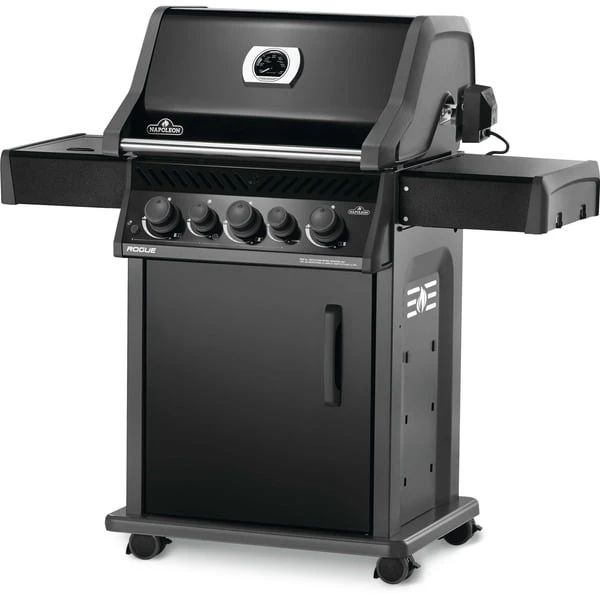 Der Gasgrill Rogue RB 425 von Napoleon verfügt nicht nur über einen Seitenkocher, sondern auch über einen Infrarot-Heckbrenner. Dieser sorgt in Verbindung mit dem höheren Deckel dafür, dass die Grills zu wahren Rotisserie-Spezialisten werden. Der Rogue RB 425 wird komplett mit einem Drehspieß-Set inklusive Motor geliefert. Man kann also direkt „losgrillen“. Ob ein ganzes Hähnchen oder ein Spanferkel, der Rogue RB 425 liefert ein perfektes Grillergebnis mit herrlicher Kruste. Die porzellan-emaillierten WAVE Gussroste speichern höchst effizient die Hitze der drei massiven Edelstahl-Brenner und geben diese an das Grillgut weiter. So kann sich das Branding immer sehen lassen. Das im Deckel integrierte ACCU PROBE Thermometer misst exakt die Temperatur unter dem Grilldeckel, ohne diesen öffnen zu müssen. Dank der Seitenablagen, die sich im Handumdrehen herunterklappen lassen, kann man den Rogue besonders platzsparend unterbringen, auch auf dem kleinsten Balkon.Art.-Nr.: 1680090