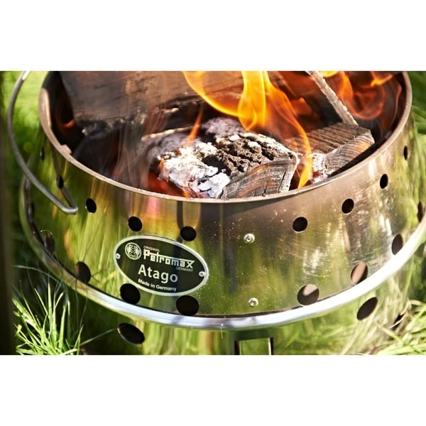 Der Petromax Atago ist extrem robust und unverzichtbar für Outdoor-Enthusiasten. Er ist ein absoluter Allrounder und kann als Grill, Ofen, Herd und Feuerschale verwendet werden. Zum Anfeuern des Atago eignen sich Holzkohle, Holzkohlebriketts und Feuerholz. Dank seiner vier Grundfunktionen ergeben sich zahlreiche Garmethoden und Zubereitungsvarianten. In Kombination mit einem Petromax Feuertopf oder Grill- und Feuerschale wird der Atago zu einem erstklassigen Ofen und Herd. Dazu wird der gusseiserne Feuertopf (z. B. der Petromax ft1, ft3, ft4.5, ft6 oder ft9) einfach auf die glühenden Briketts im Petromax Atago gestellt. Für Pfannengerichte kann die Petromax Grill- und Feuerschale ohne Beine (fs48 oder fs56) oben auf der runden Öffnung des Atago platziert werden. Da die Schale oder der Feuertopf vom Atago umgeben wird, ist für eine optimale Hitzeausbeute gesorgt. Um das Produkt ganz klassisch als Grill zu nutzen, legt man einfach den im Lieferumfang enthaltenen Grillrost auf. Wird der Atago ohne Grillrost verwendet, so lässt sich mit einem Perkolator oder Teekessel ein Heißgetränk zubereiten oder ein gemütliches Lagerfeuer für den Abend entzünden. Durch den einzigartigen Klapp-Mechanismus ist der Petromax Atago mit nur einem Handgriff einsatzbereit. Genauso schnell ist er wieder zusammengeklappt. Mit einer Höhe von nur 15cm im eingeklappten Zustand kann er hervorragend und platzsparend verstaut werden.Art.-Nr.: 1533703