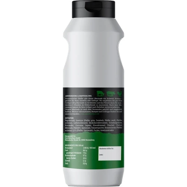 #Alterpfeffer steht für eine einzigartig leckere fermentierte Pfeffermarinade, die Grillspezialitäten eine besondere Note gibt. Ob Fleisch, Fisch, Gemüse oder vegane Speisen, mit dieser Marinade hat man noch mehr Möglichkeiten auf dem Grill. Mit flüssigen Marinaden bringt man noch mehr Geschmack an das Grillgut und es ist eine ideale Alternative für Trockenrubs. Die leckere Marina harmoniert z.B. herrlich mit Ribs, Pulled Pork oder klassischen Nackensteaks. Die SizzleBrothers Marinade kommt in der praktischen und wiederverschließbaren 500 ml Flasche und eignet sich zum Marinieren von ca. 5 kg Grillfleisch.Art.-Nr.: 1658861