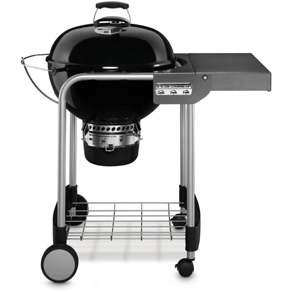 Der Weber Performer GBS (15301004) ist auf einem stabilen Grillwagen befestigt mit zwei großen, bruch- und wetterfesten Rädern und zwei Lenkrollen mit Stoppfunktion. Er besitzt eine große Arbeitsfläche, die so beschichtet ist, dass sie besonders widerstandsfähig und langlebig ist. In den Deckel ist ein Thermometer integriert, um jederzeit die Temperatur überprüfen zu können. Um den Deckel des Grills ablegen zu können, ist ein praktischer Deckelhalter eingebaut. Die Asche kann man leicht entnehmen und entsorgen, da der Aschetopf extra groß designt wurde. Zum Schutz ist der Deckelgriff mit einem Hitzeschutz versehen. Die Kohle lässt sich gut in dem Kohlevorratbehälter des Performer GBS lagern, welcher wettergeschützt ist und sich seitlich herausklappen lässt.Art.-Nr.: 1167437